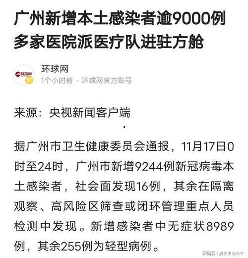 最近广州的疫情情况可是牵动着大家的心呢!这不,刚刚又有最新的爆料出来了,咱们得好好聊聊这个话题。你有没有听说,广州的疫情又有新动向了?别急,让我带你一探究竟!